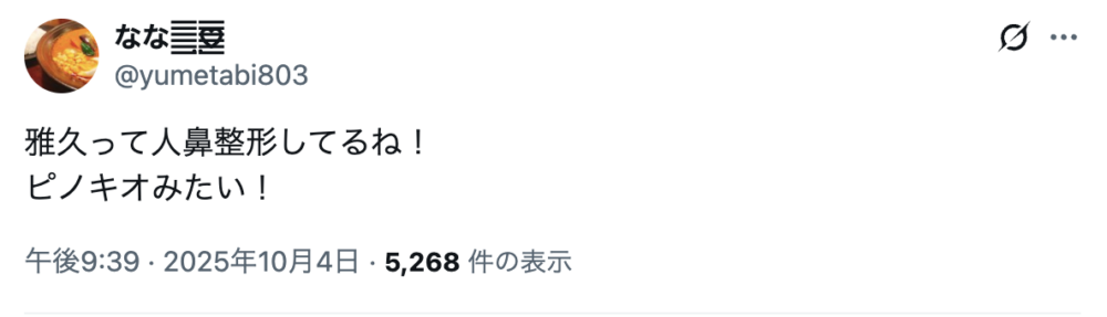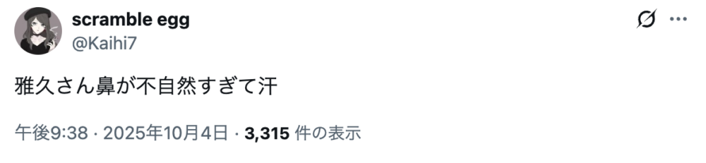 雅久さんの鼻が変わったという声が特に多く出たのは、2025年からです。