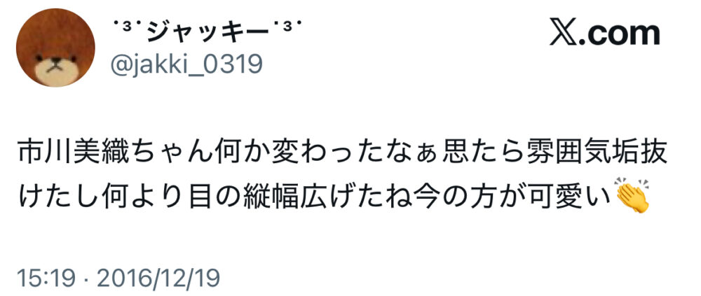 ファンからも、市川美織さんってずっと可愛いという声が上がっています!