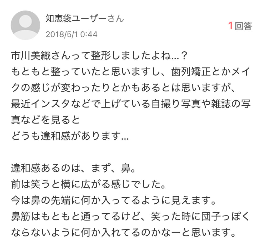 市川美織さんは、美容整形できれいな鼻になったのでしょうか?