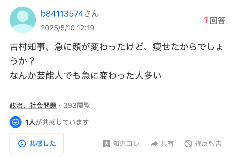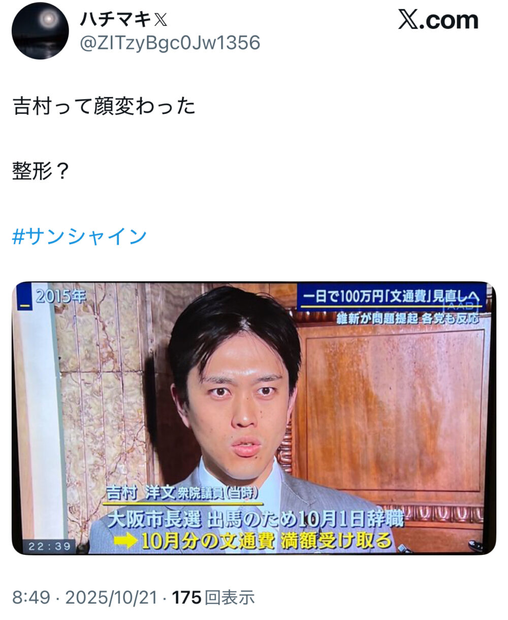 たしかに吉村洋文さんの顔が変わった、整形したかのように変わったという声が多いですね!